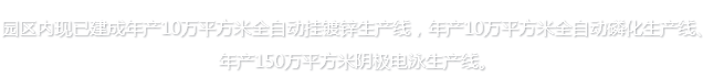 特點: PLC全自動控制,故障自動解析報警,過程參數自動顯示及記錄,全自動安全防護,在線自動吹水/烘干。鹽霧能力、附著力、耐沖擊、耐彎曲性等性能國內領先。 產能: 10萬平方米/年